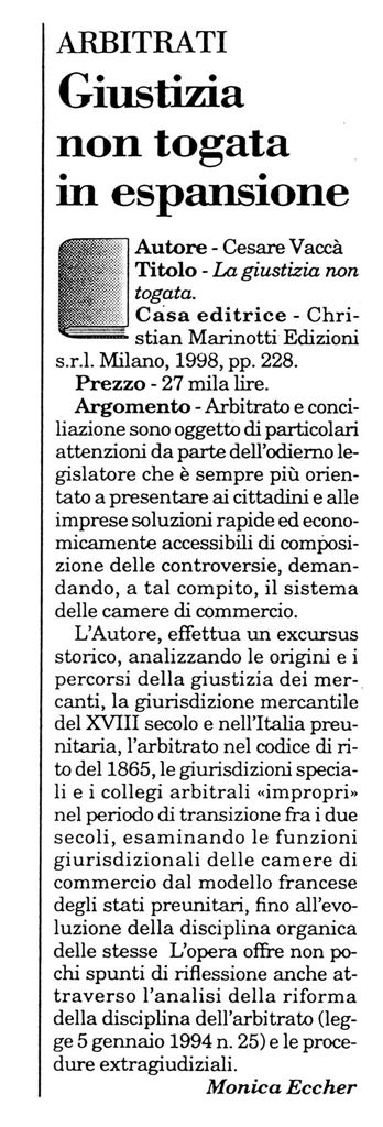 Arbitrato e conciliazione sono oggetto di particolari attenzioni da parte dell’odierno legislatore che, fors’anche in conseguenza della critica situazione in cui versa il sistema d’amministrazione della giustizia civile, è vieppiù orientato ad offrire ai cittadini ed alle imprese modalità rapide e poco costose di composizione delle controversie, a tal compito delegando il sistema delle Camere di commercio.