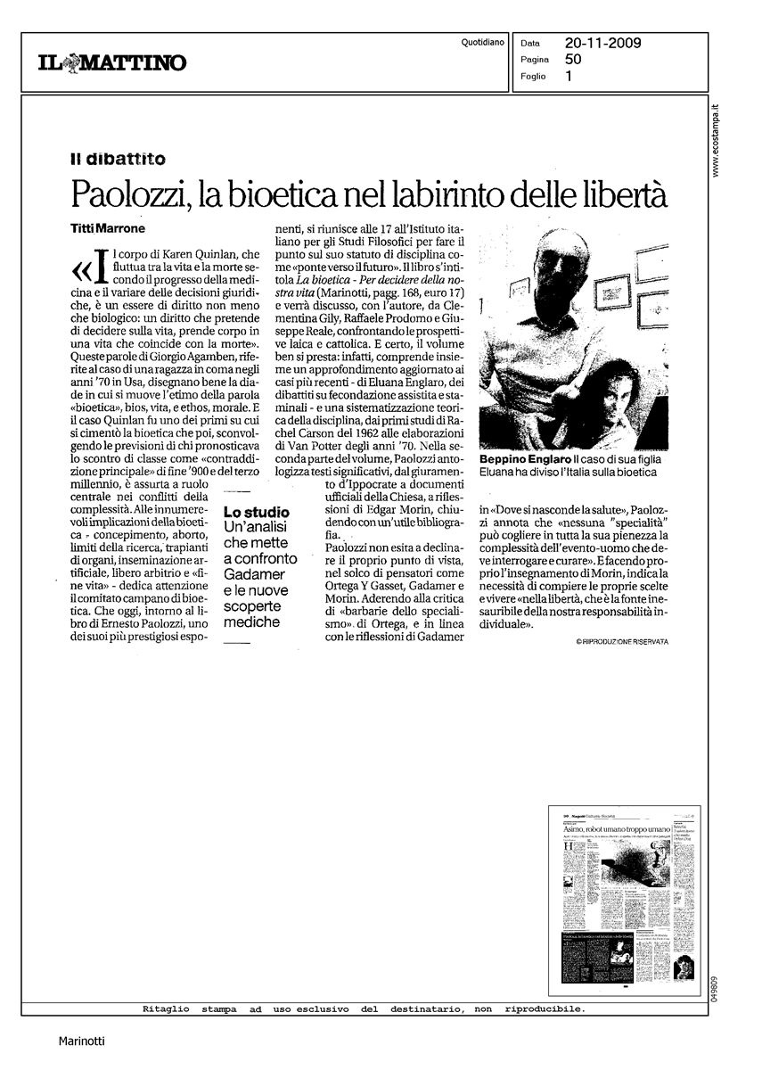 Il volume è corredato da una interessante antologia di scritti sulla bioetica, ivi compresi alcuni documenti ufficiali della Chiesa cattolica, e da una bibliografia utile al lettore che voglia approfondire le tematiche fondamentali della disciplina.