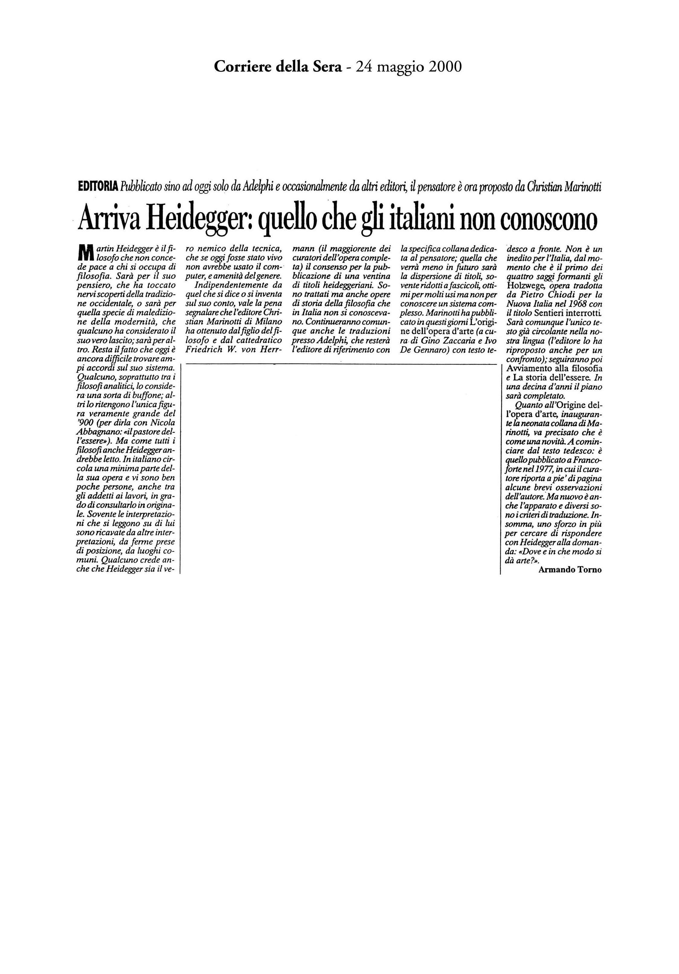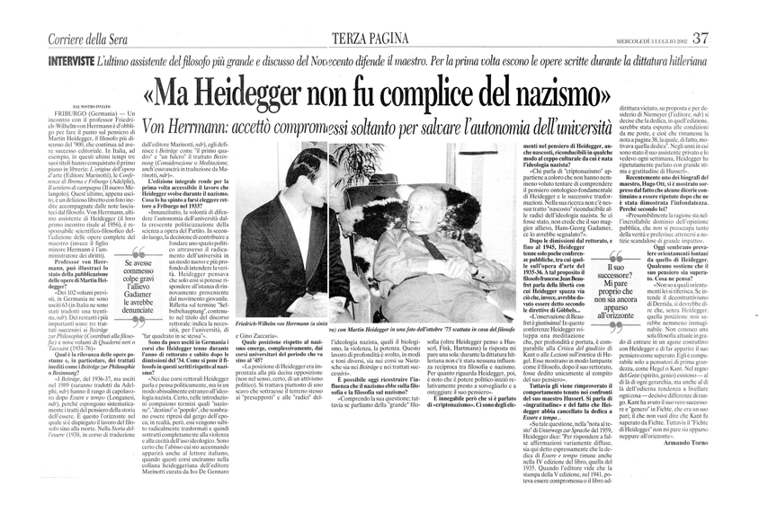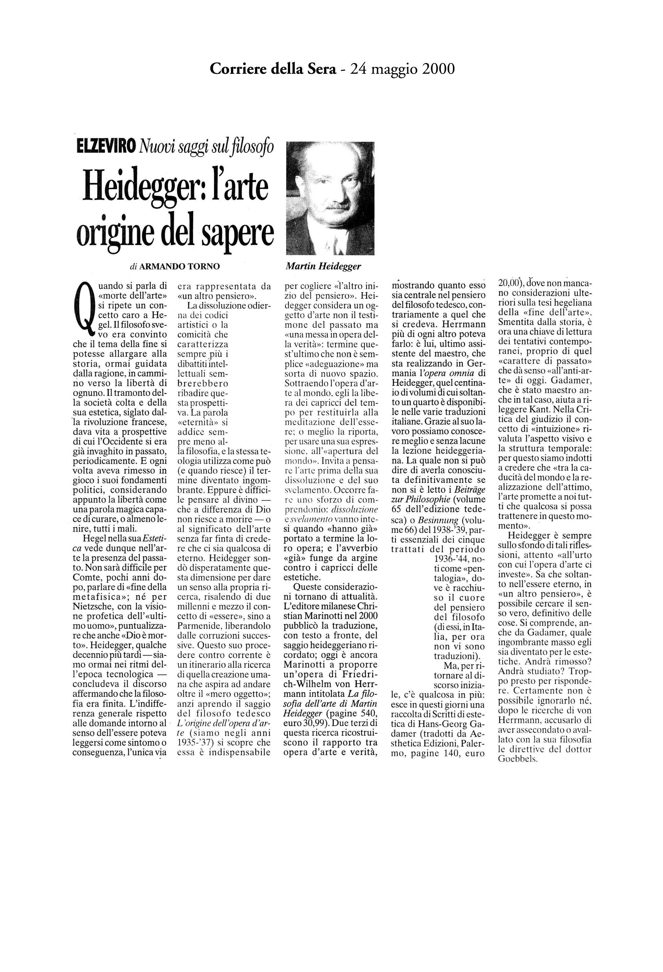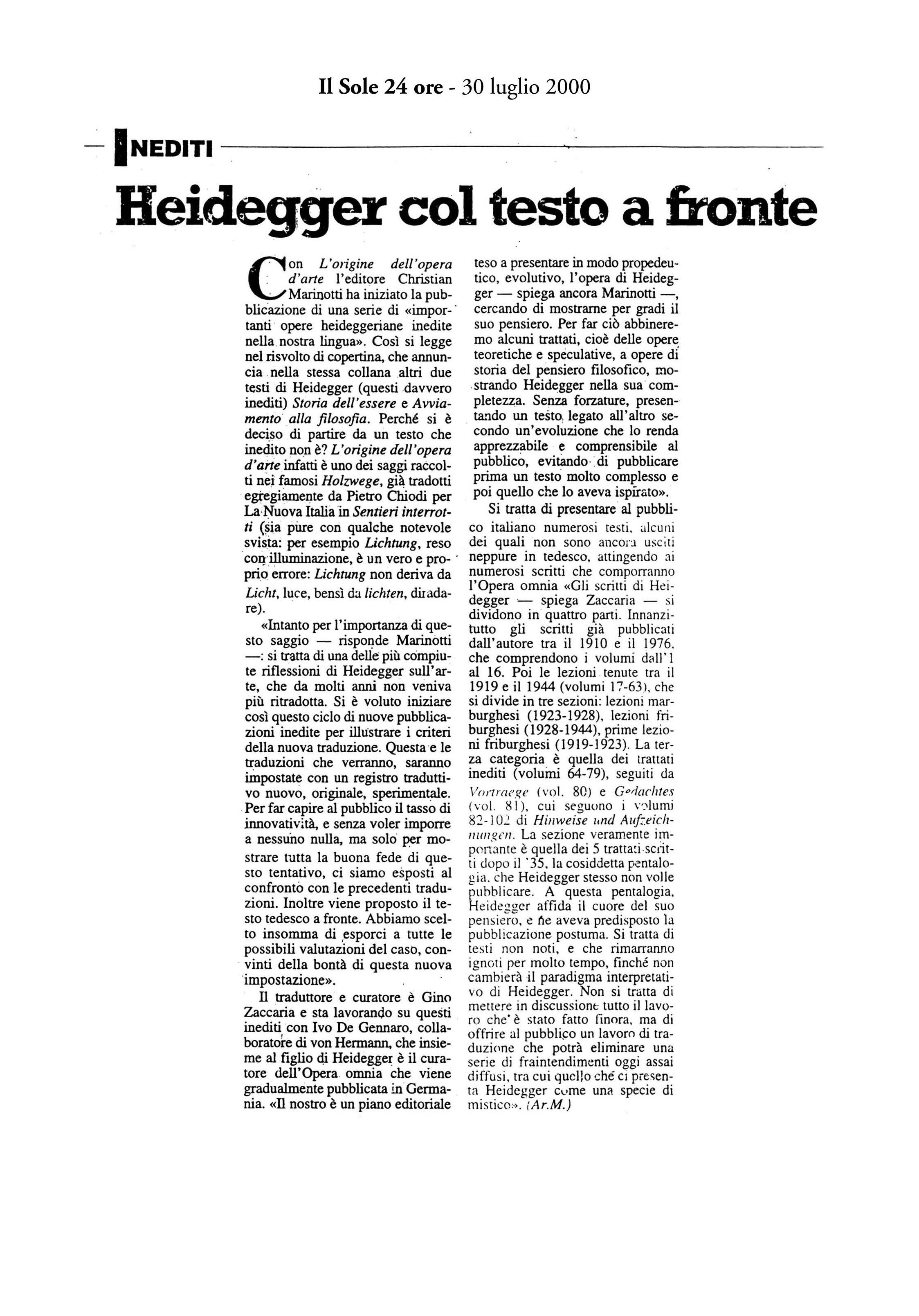 Di Martin Heidegger, celebre pensatore tedesco morto nel 1976 all’età di 87 anni, e considerato forse il maggior filosofo di questo secolo, si parla ormai frequentemente.