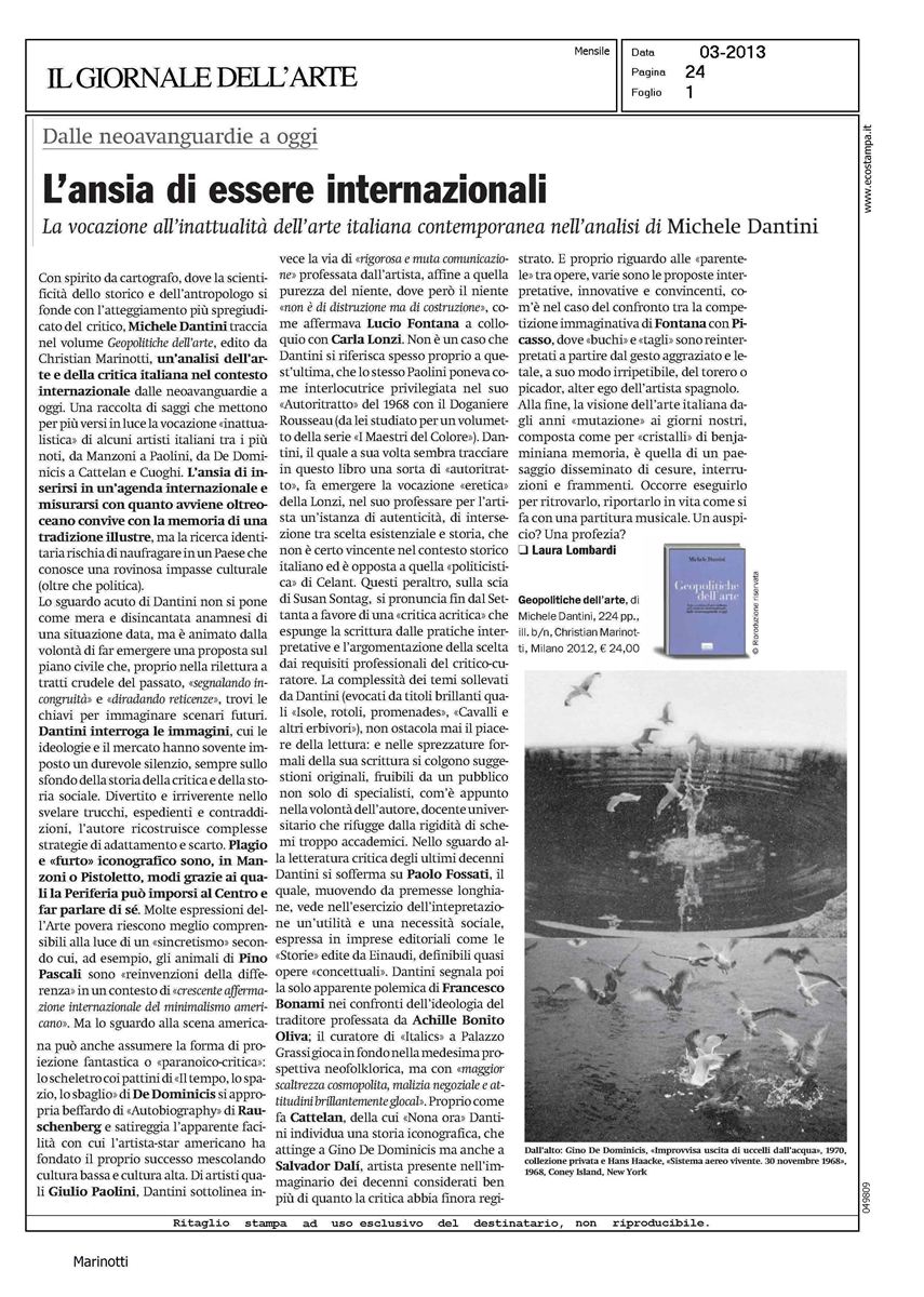 Geopolitiche dell'arte Arte e critica d'arte italiana nel contesto internazionale, dalle neo avanguardie ad oggi