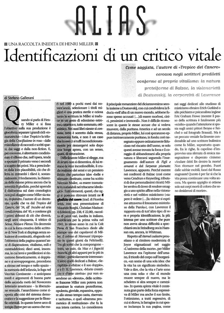 "Identificazioni di un critico vitale" -