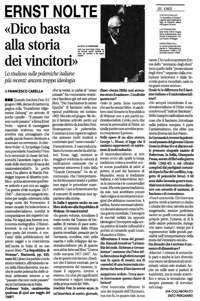 "Dico basta alla storia dei vincitori" -