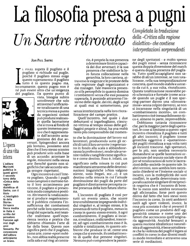 "La filosofia presa a pugni - Un Sartre ritrovato" -