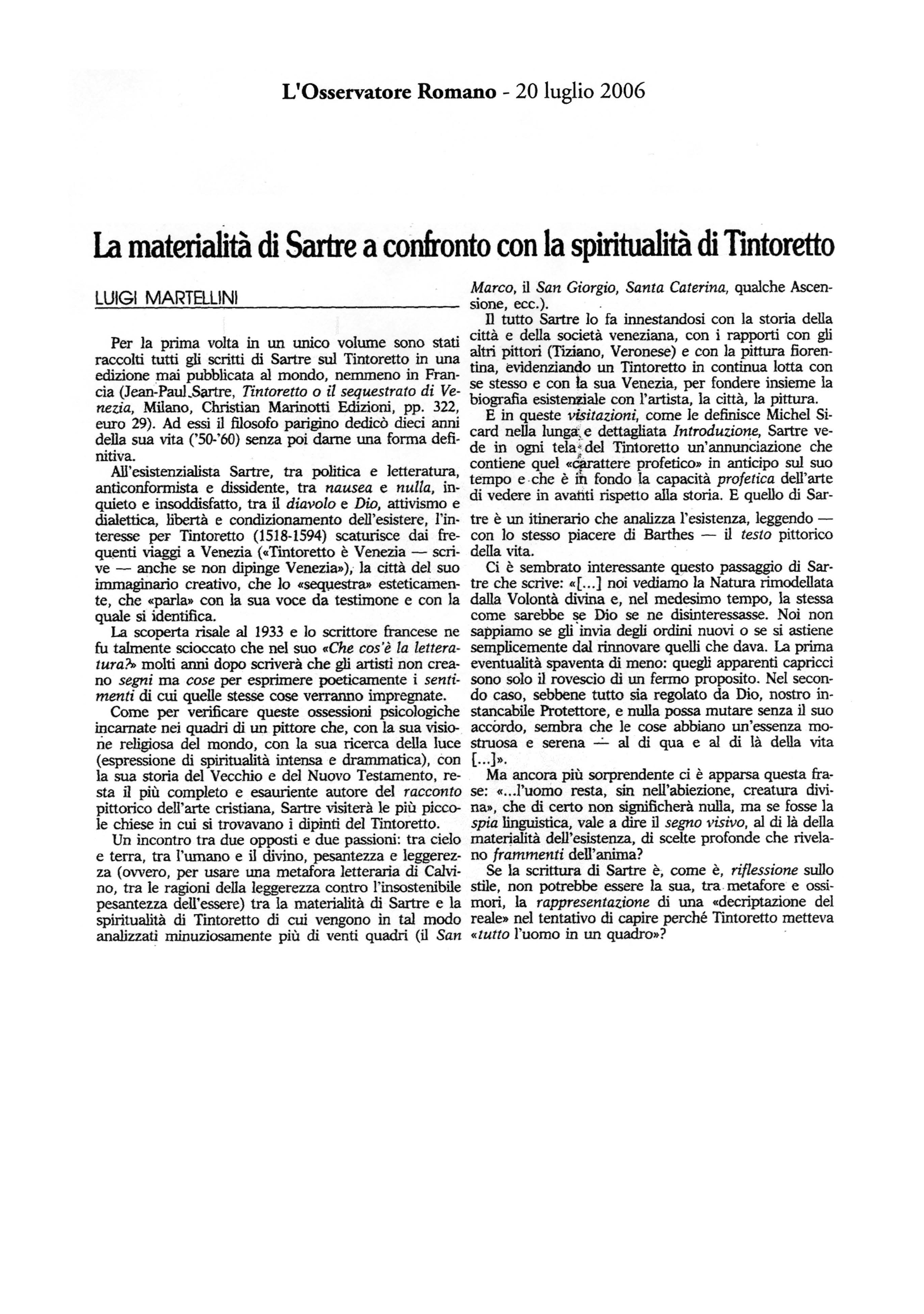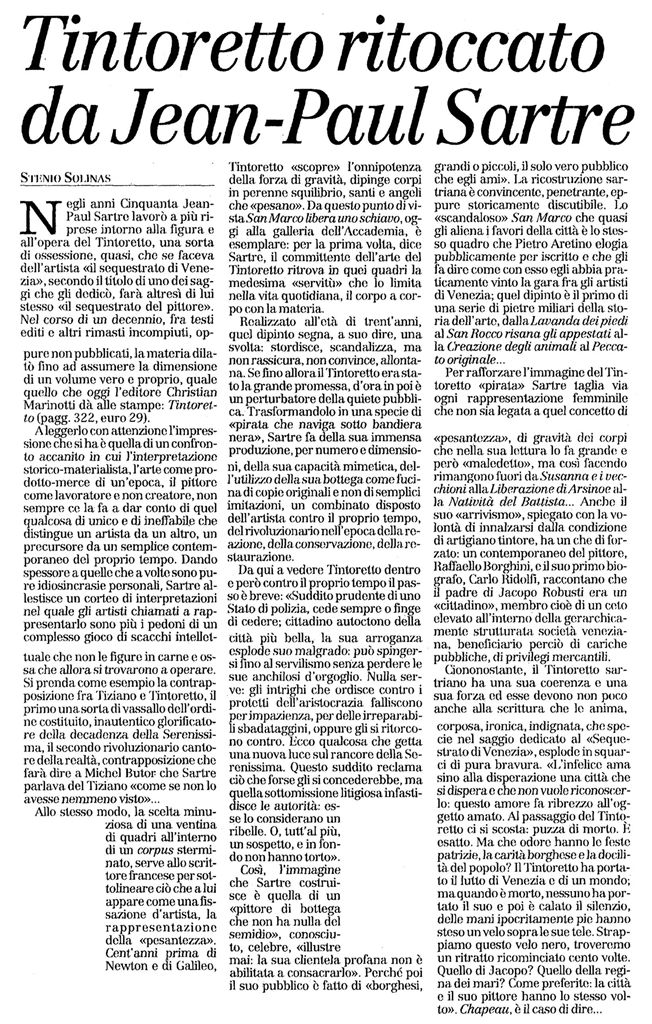 "Tintoretto ritoccato da Jean-Paul Sartre" -