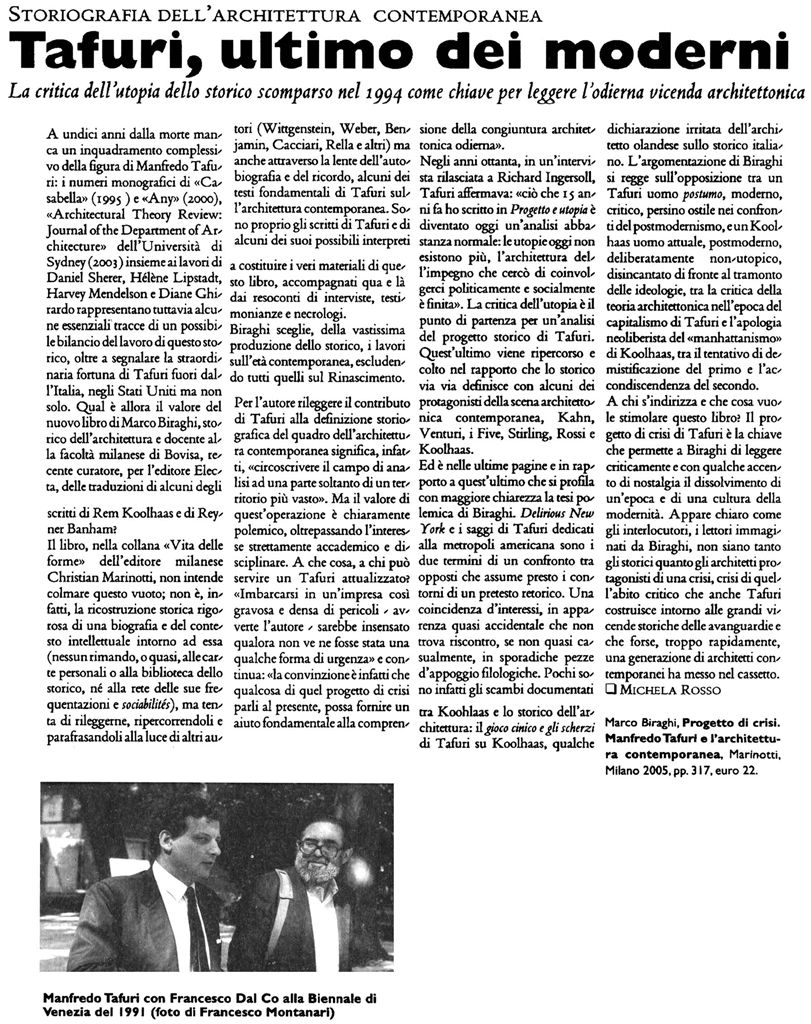 "Tafuri, architetto moderno" -
