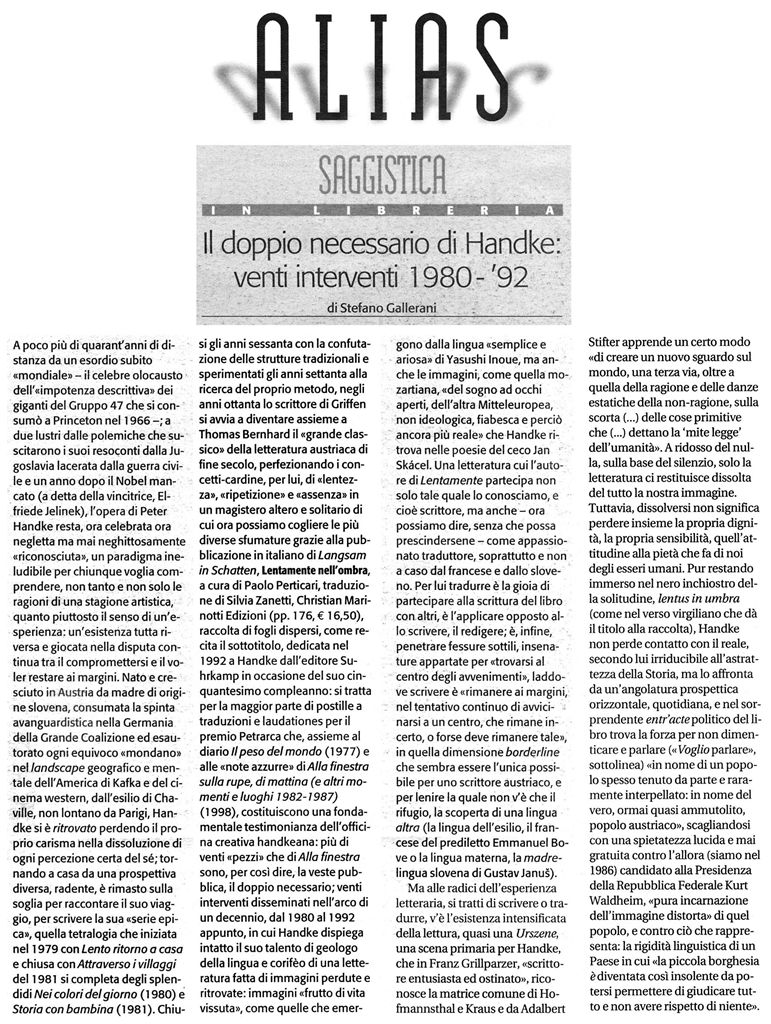"Il doppio necessario di Handke: venti interventi 1980 - 1992" -
