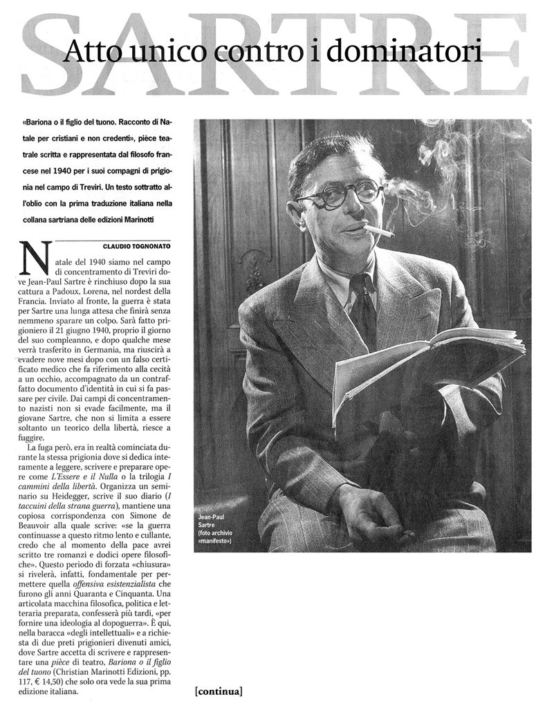 "Sartre Atto unico contro i dominatori" -