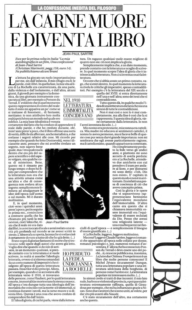 "Sartre si confessa "La mia autobiografia in un film -