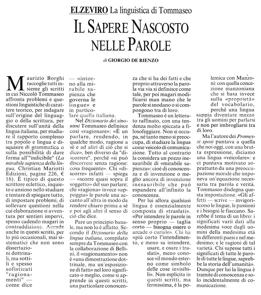 "Il sapere nascosto nelle parole" -