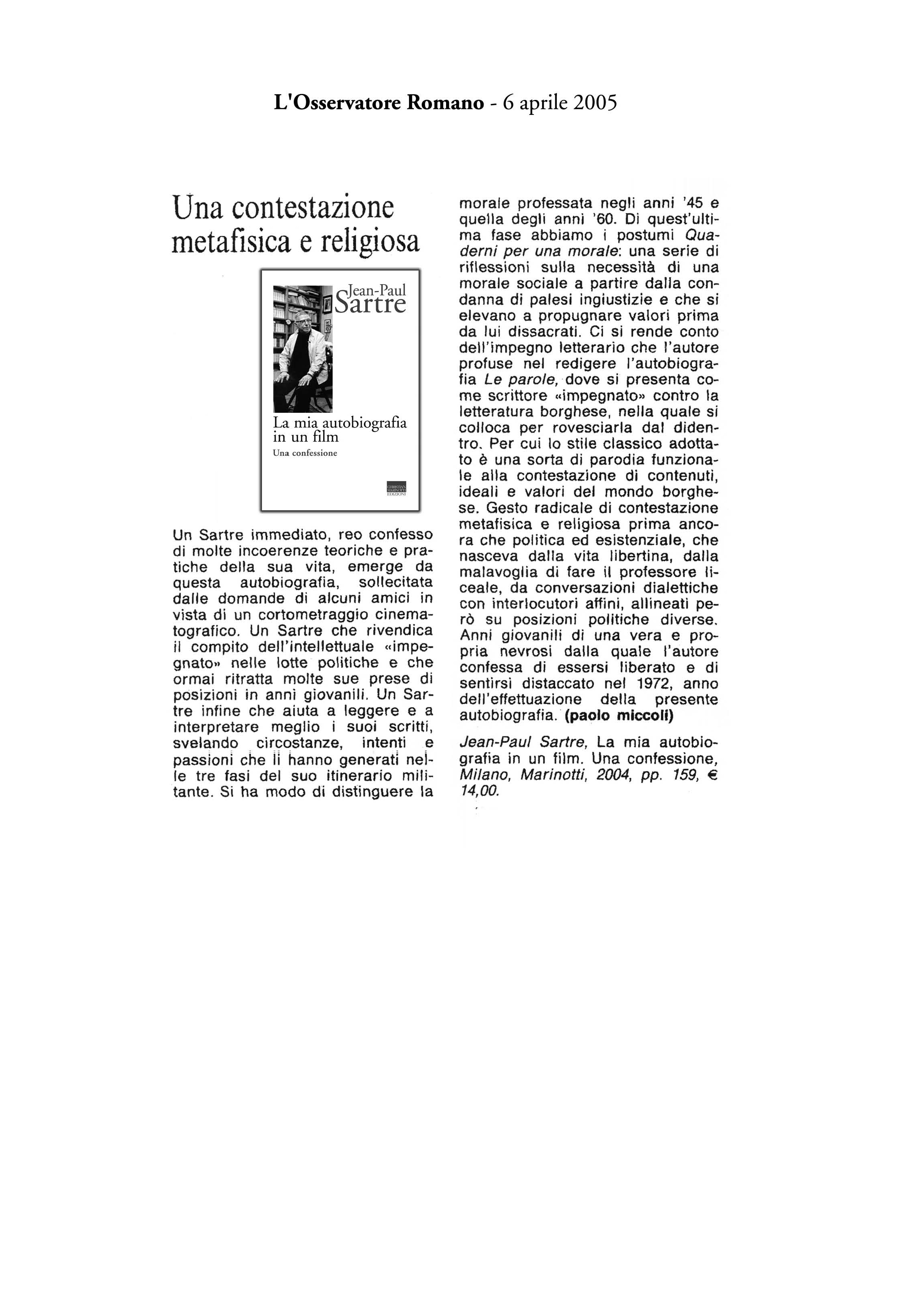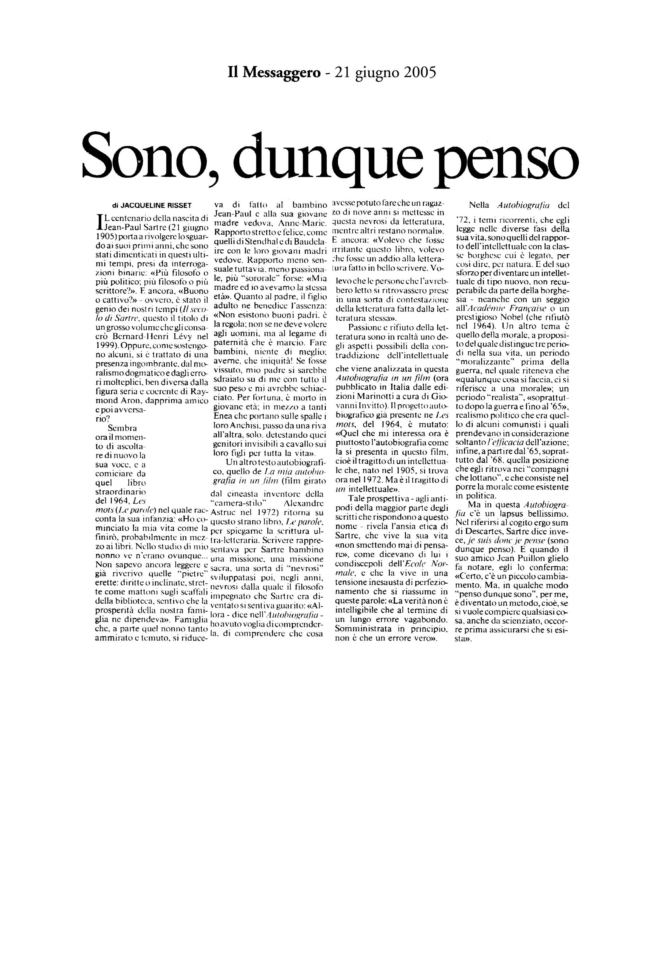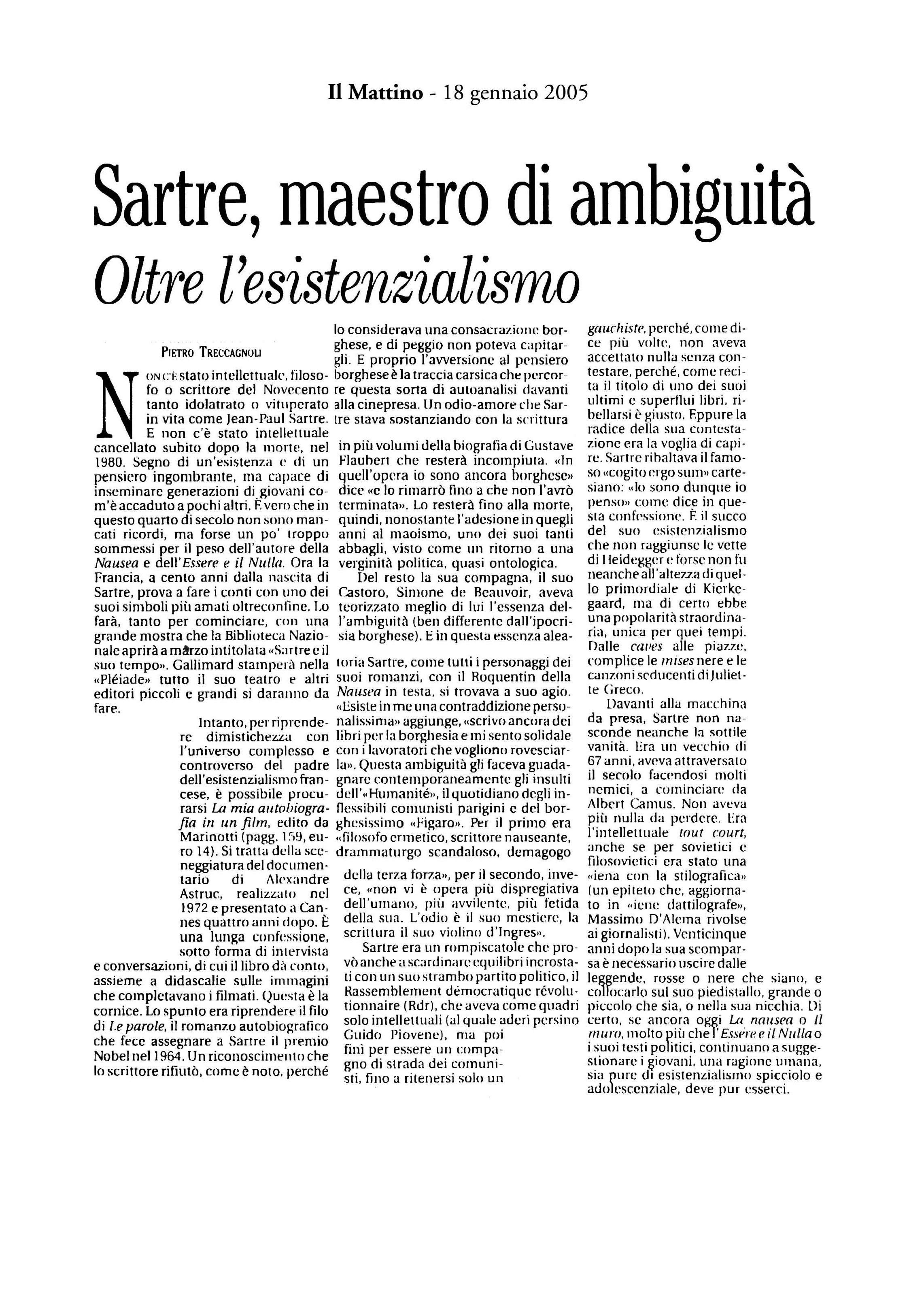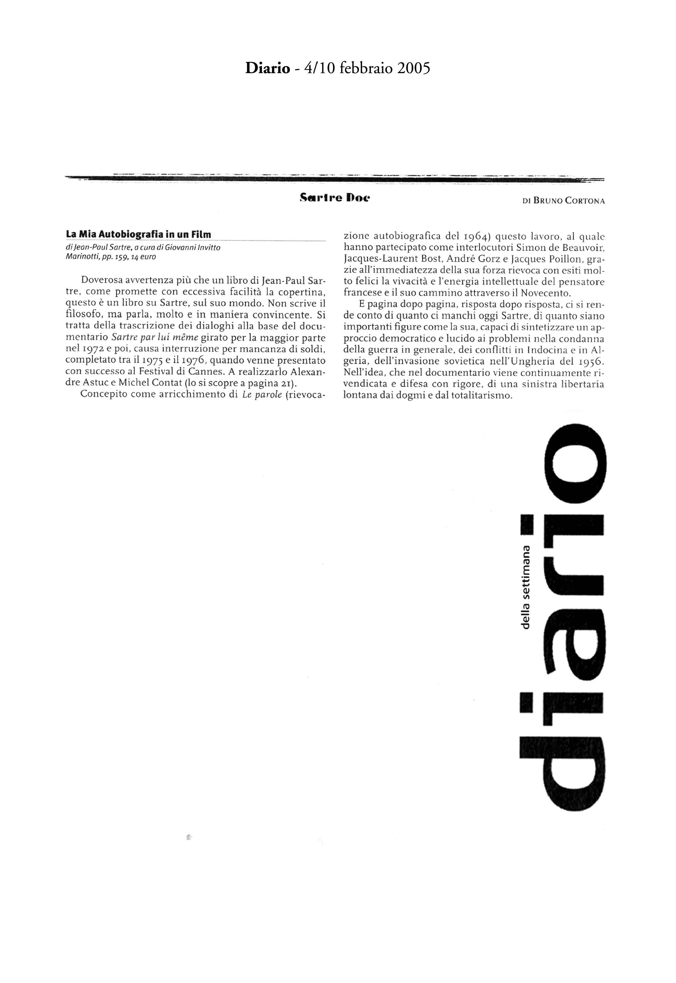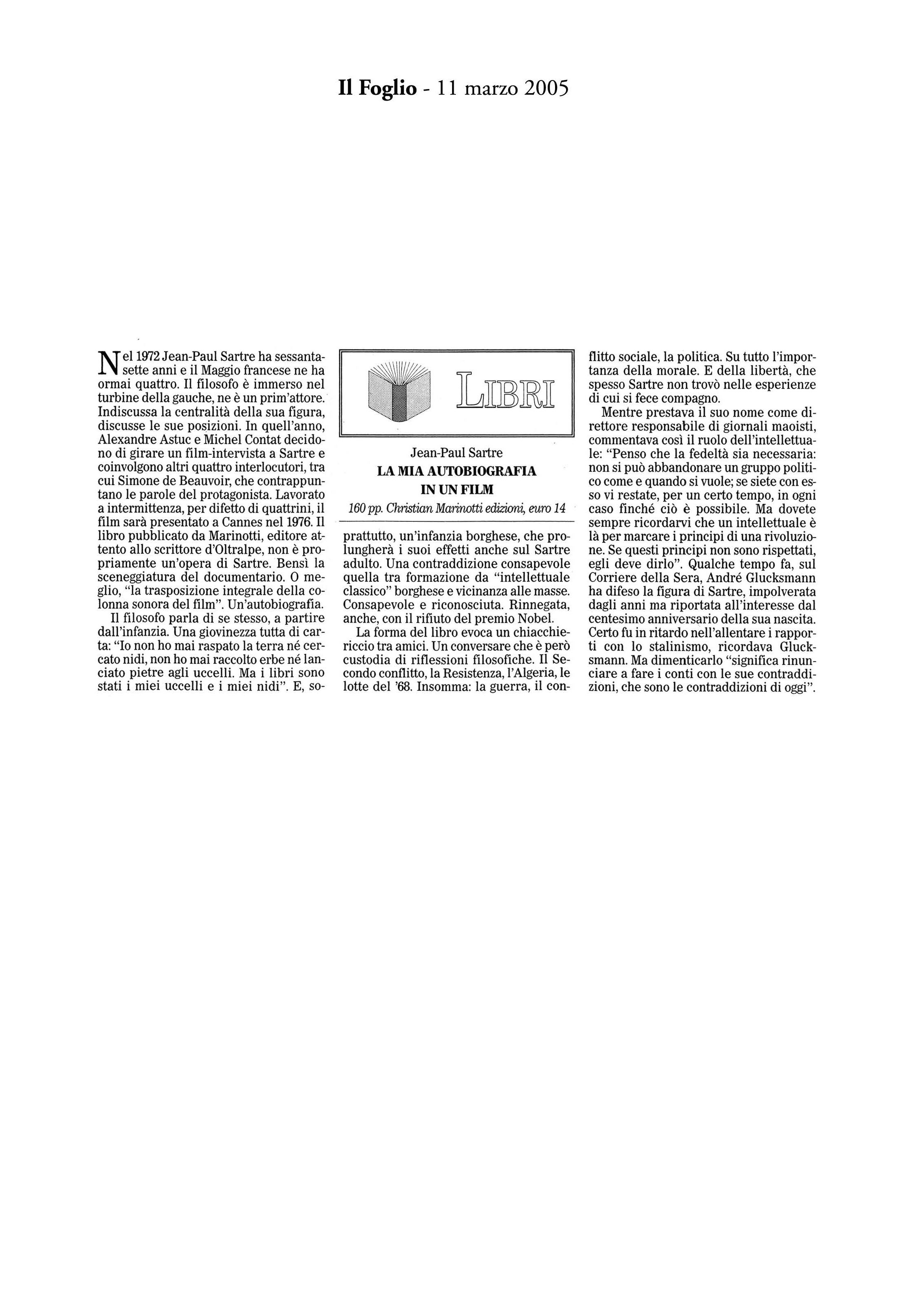 "Sartre, maestro di ambiguità"La mia autobiografia in un film -