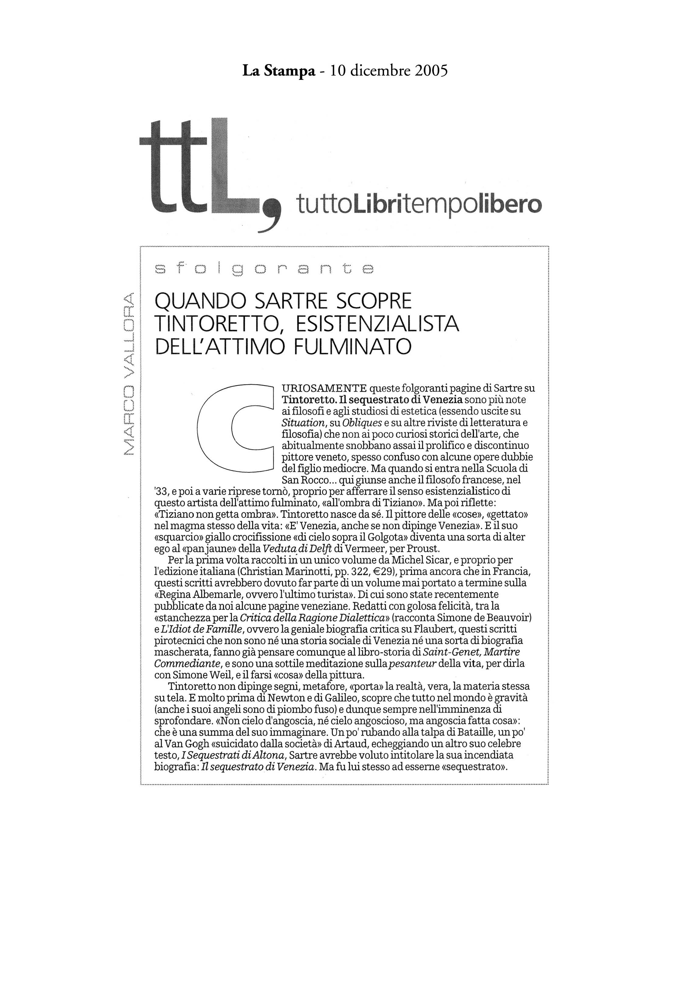 "Quando Sartre scopre Tintoretto, esistenzialista dell'attimo fulminato"Tintoretto il sequestrato di Venezia -