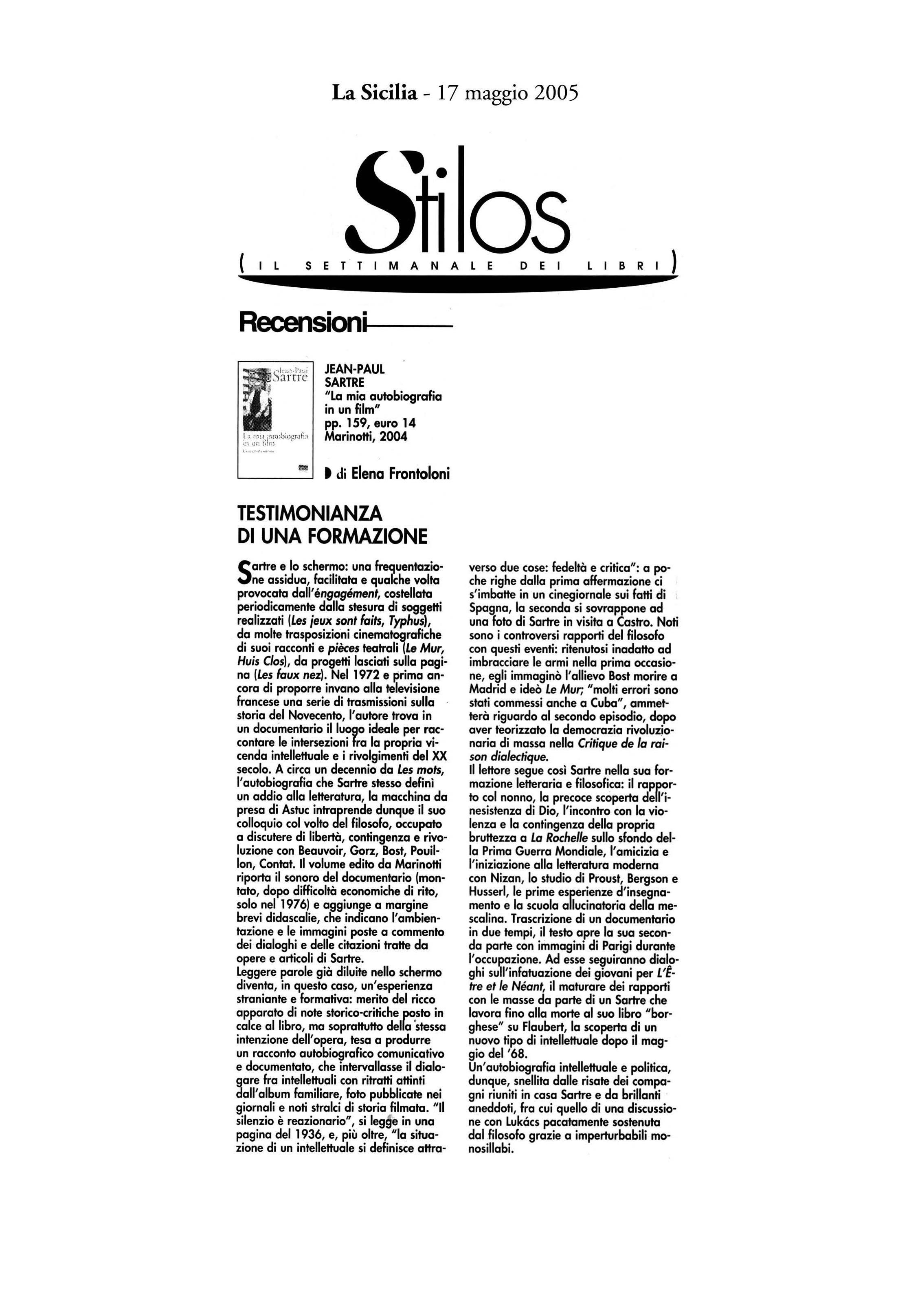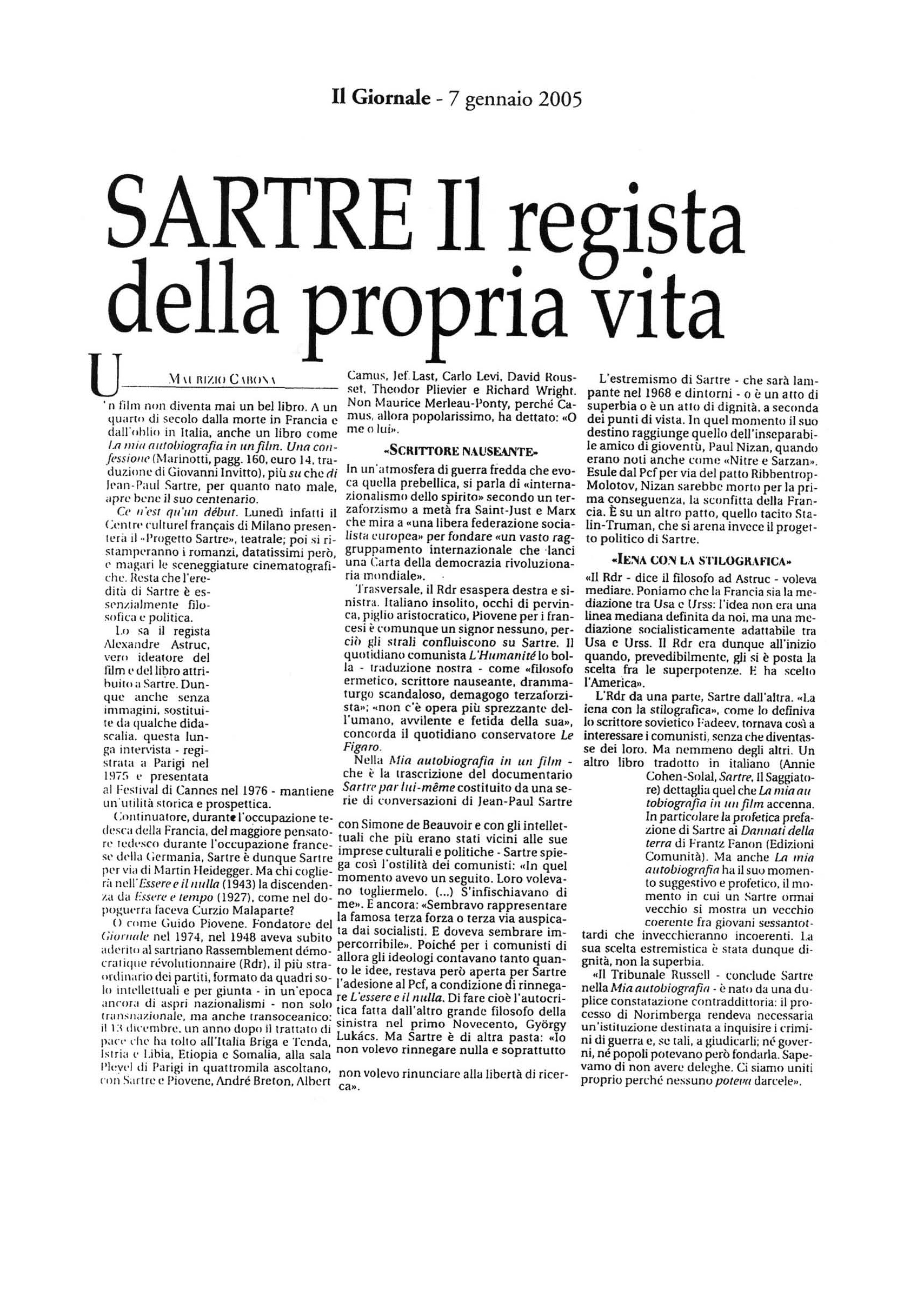 "Sartre il regista della propria vita"La mia autobiografia in un film -