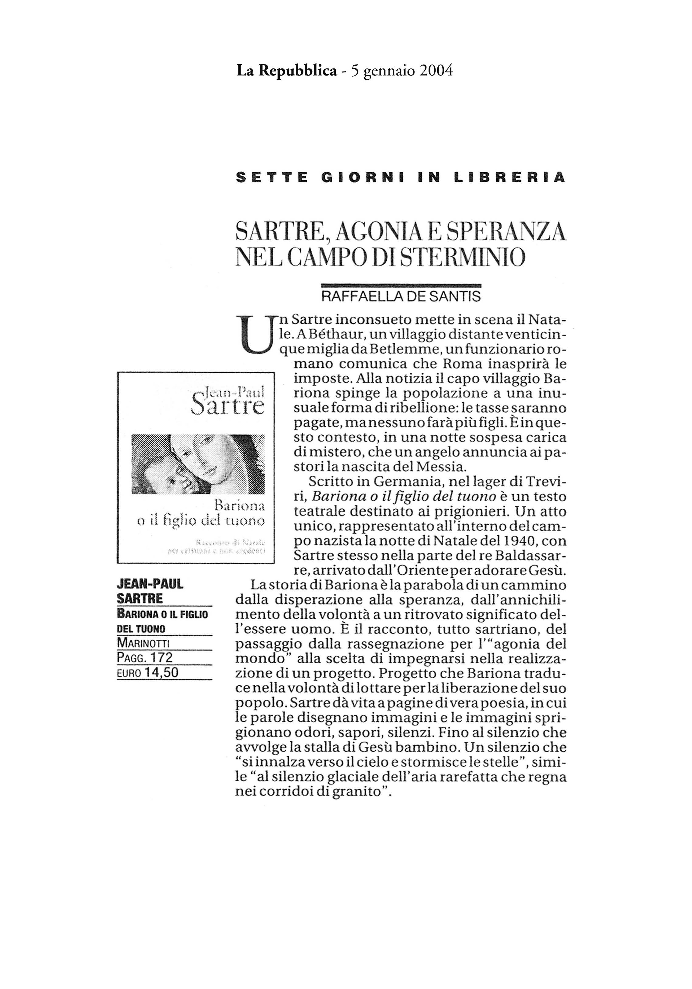 "Sartre, agonia e speranzanel campo di sterminio"Bariona o il figlio del tuono -