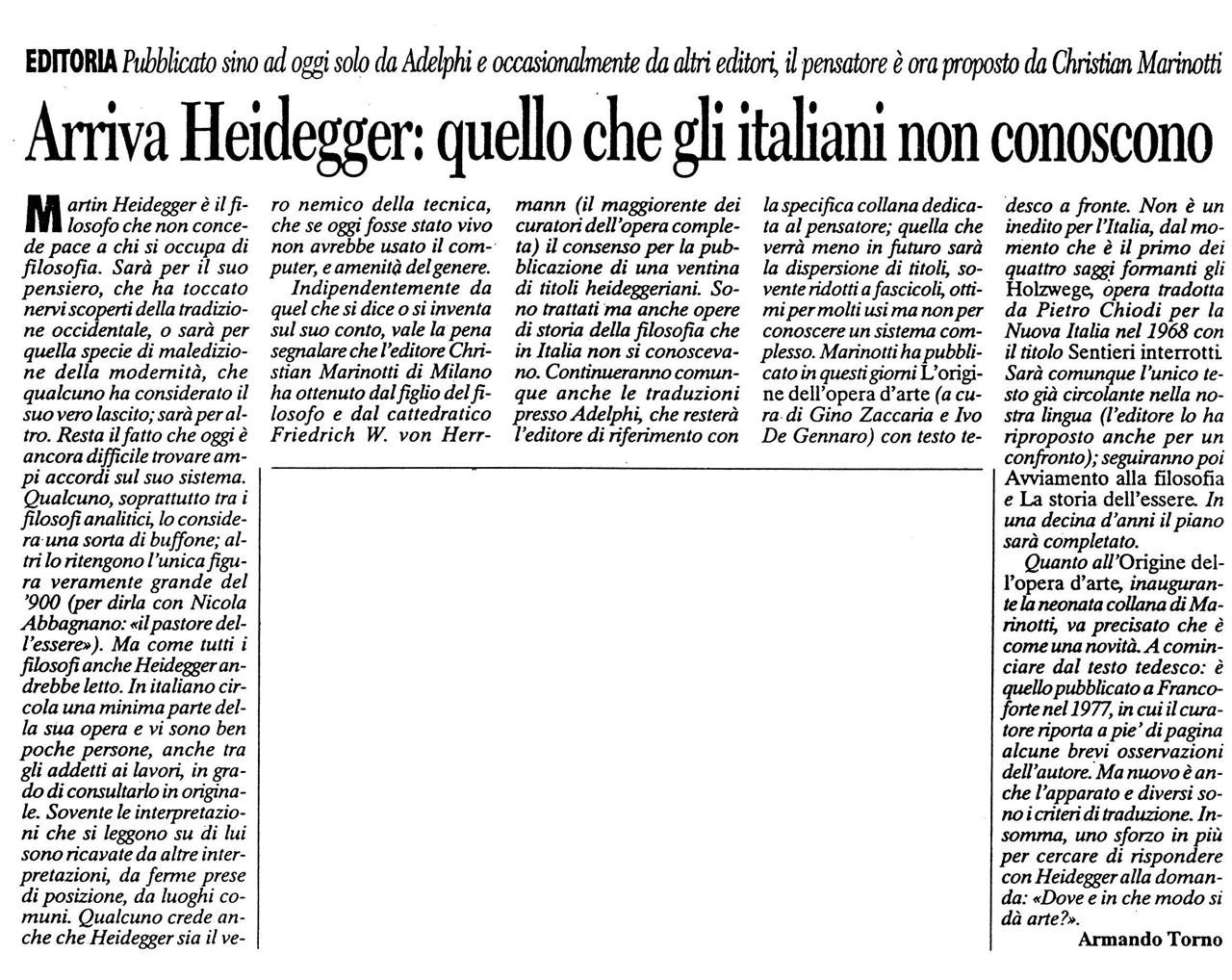 "Arriva Heidegger: quello che gli italiani non conoscono" -