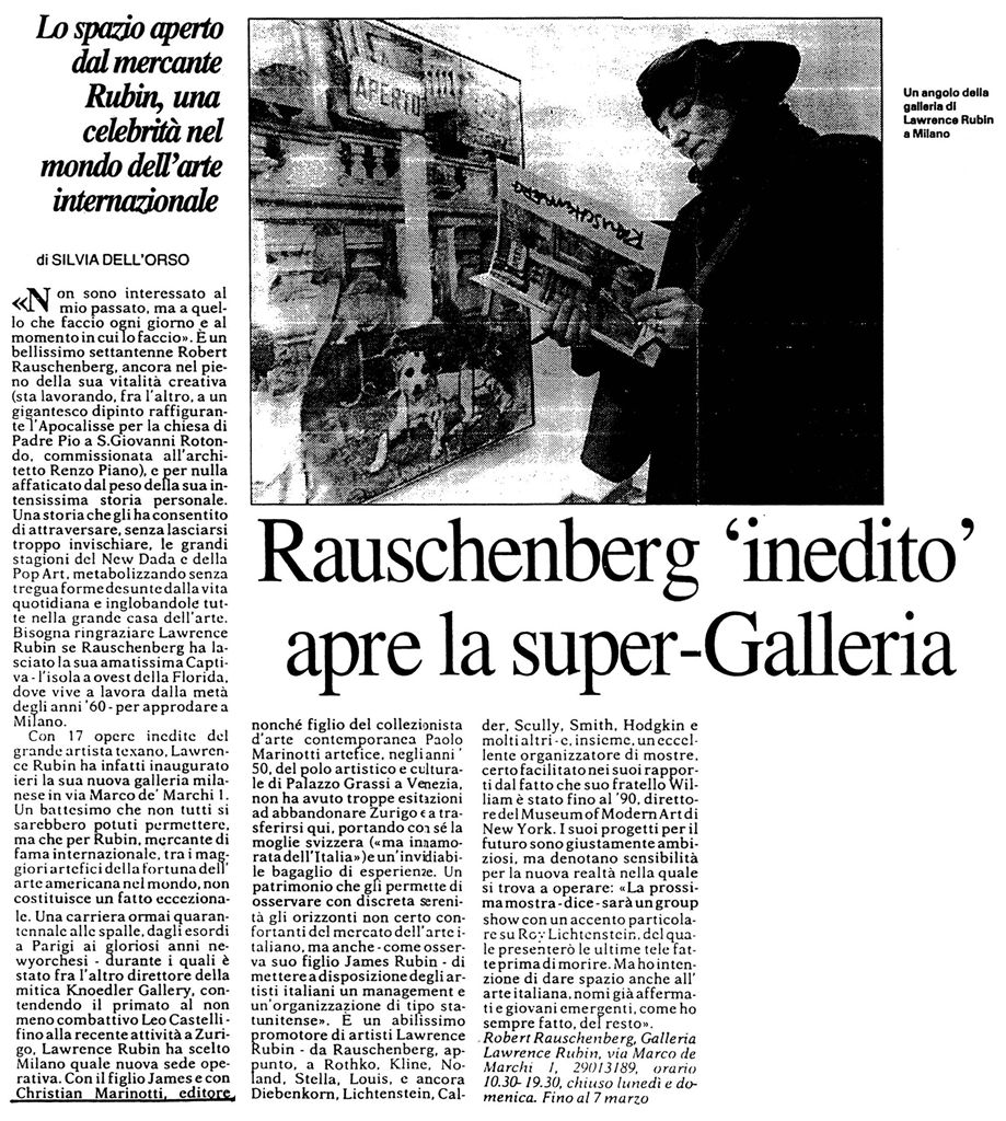 "Rauschenberg inedito apre la super-galleria"