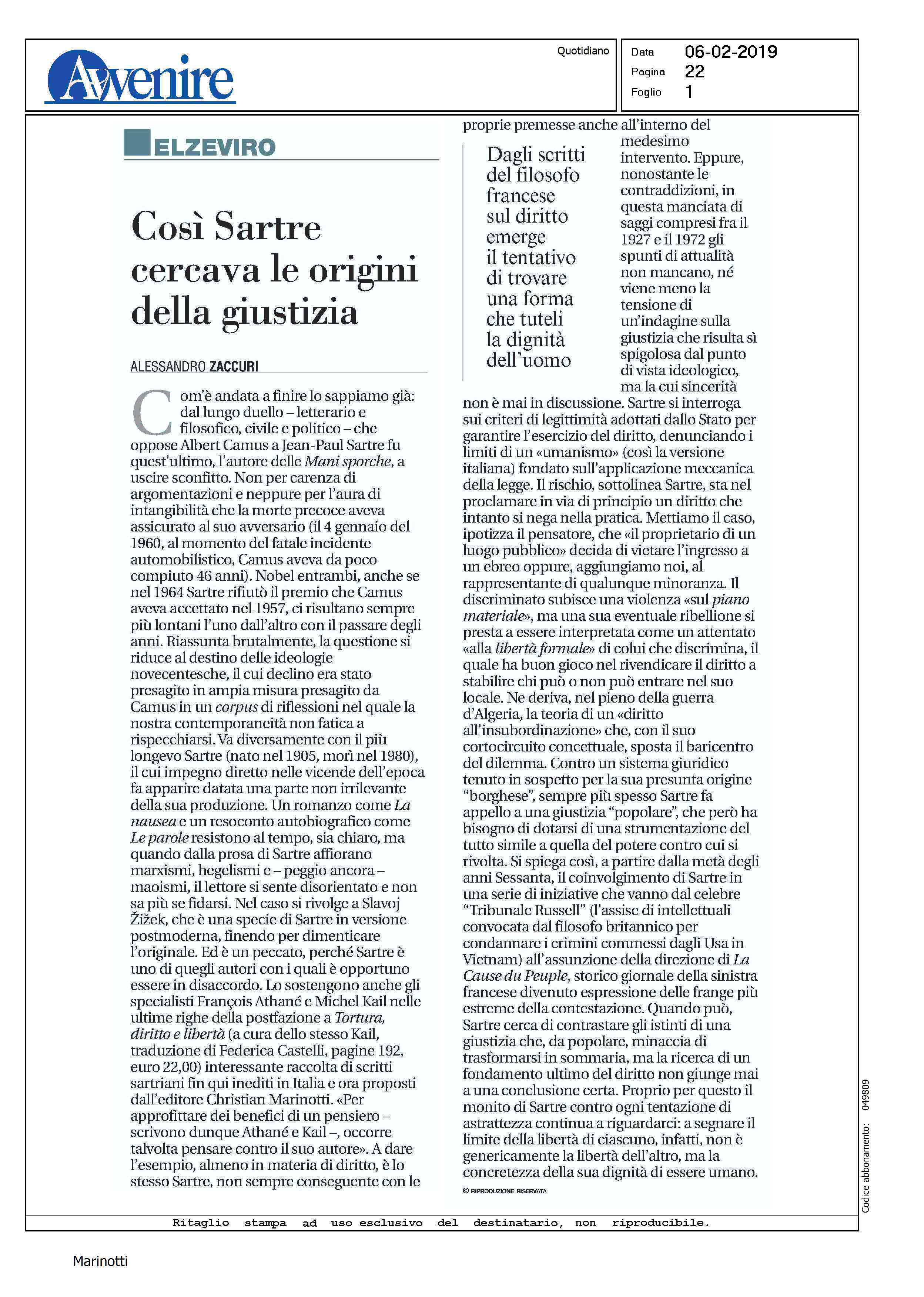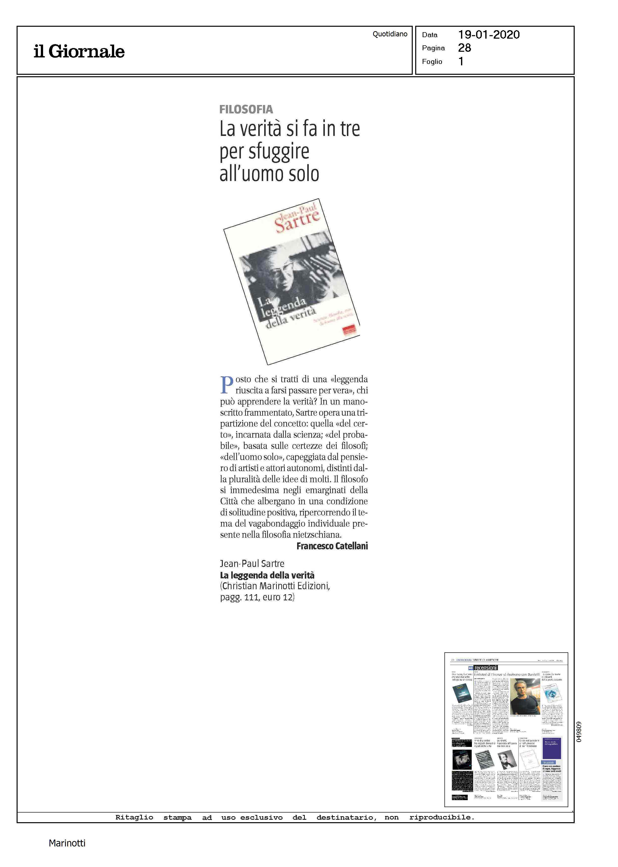 ilsole24ore.com Febbraio 2020"Libri. La leggenda della verità di Jean-Paul Sartre"La leggenda della verita