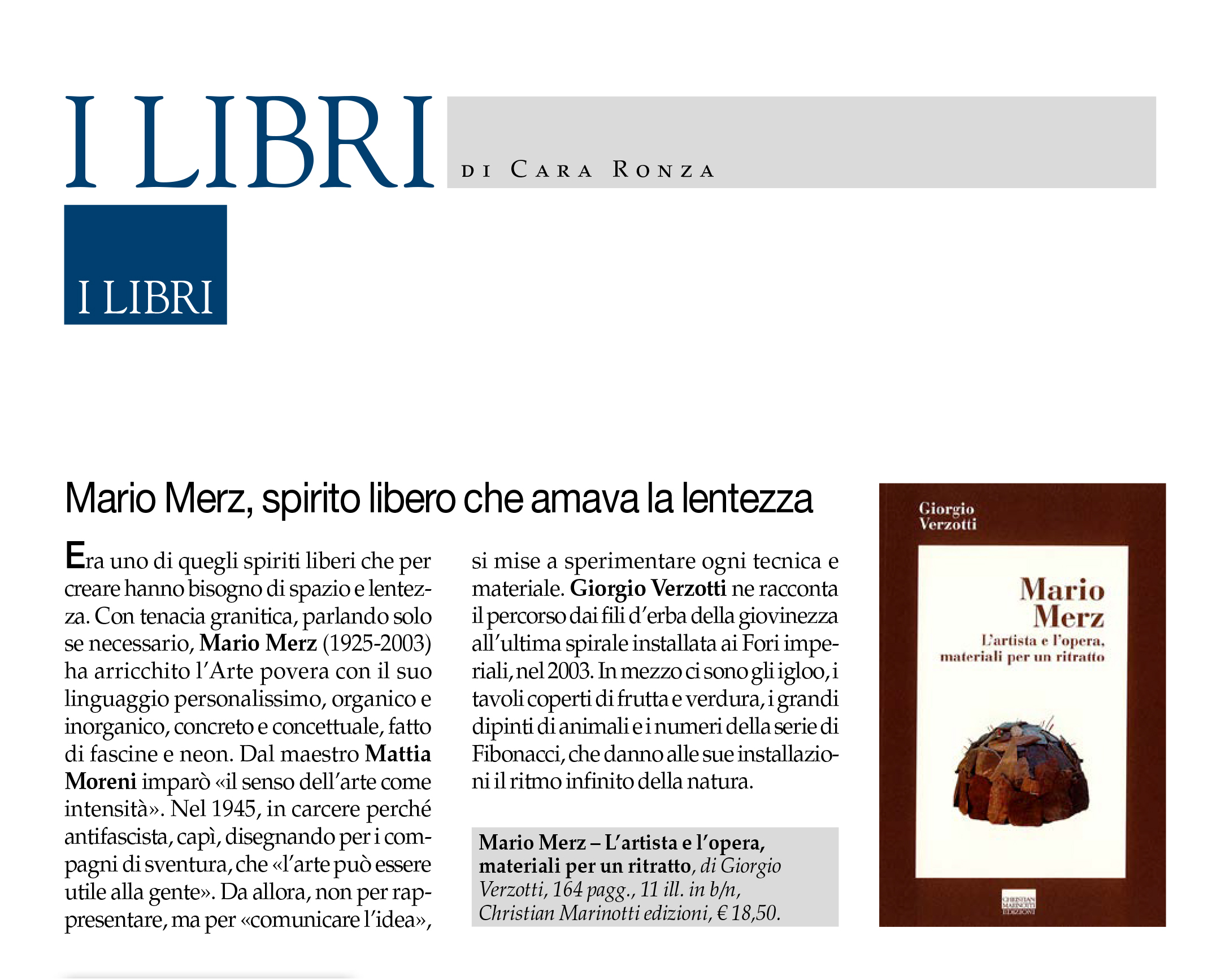 "Arte e artisti italiani in 6 libri. 2. Mario Merz il metodico"Mario Merz. L'artista e l'opera, materiali per un ritratto -
