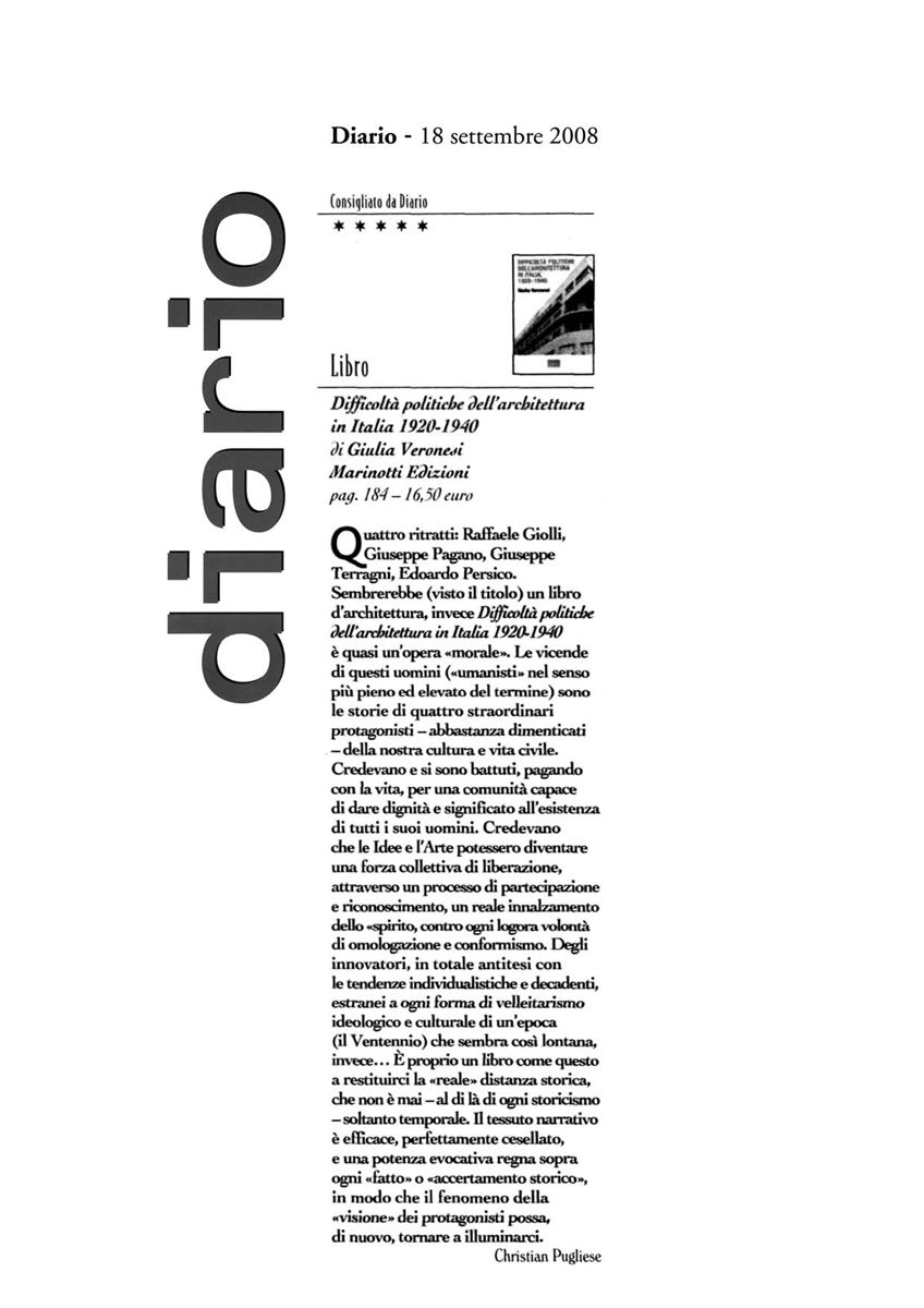 "Diario"Difficoltà politiche dell'architettura -