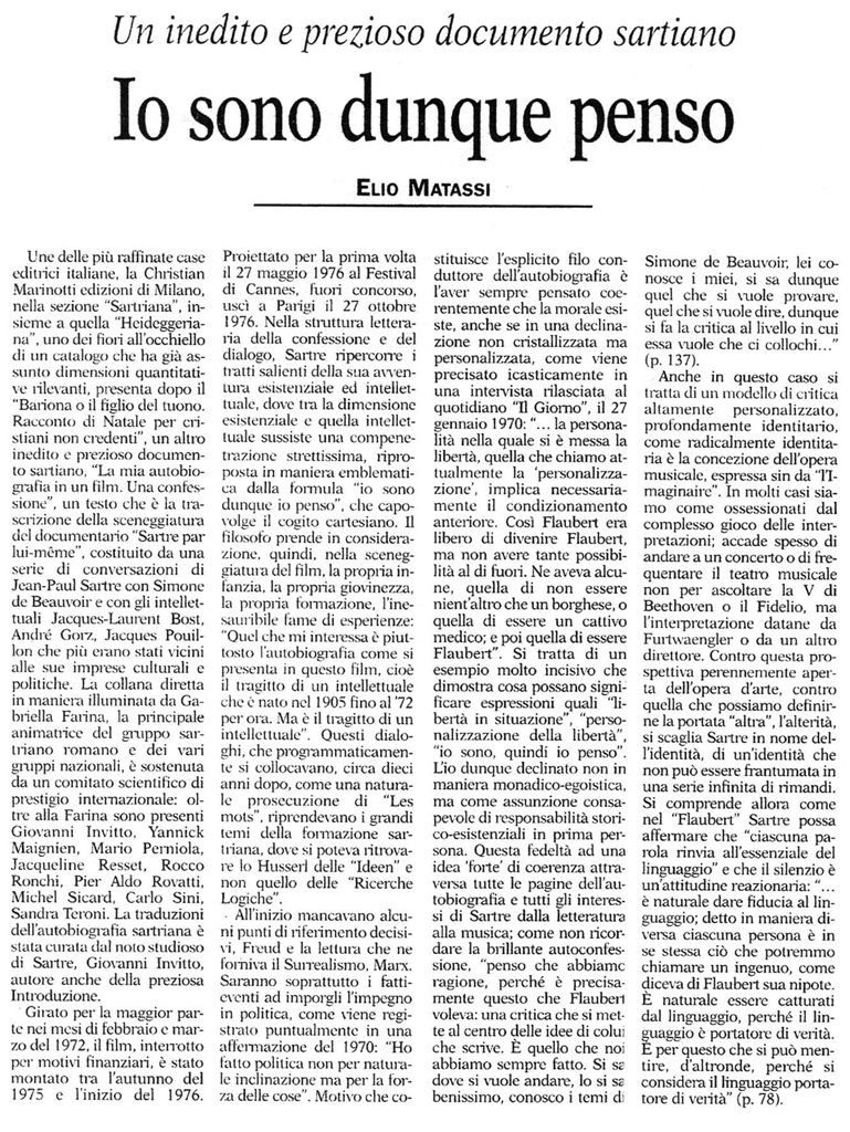 "Sartre e l'opera sulla natività" -