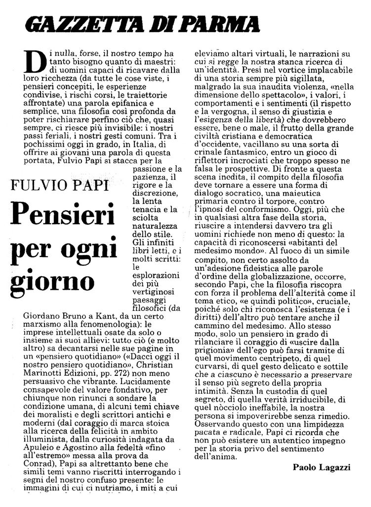 Gazzetta di Parma Febbraio 2008"Pensieri per ogni giorno"