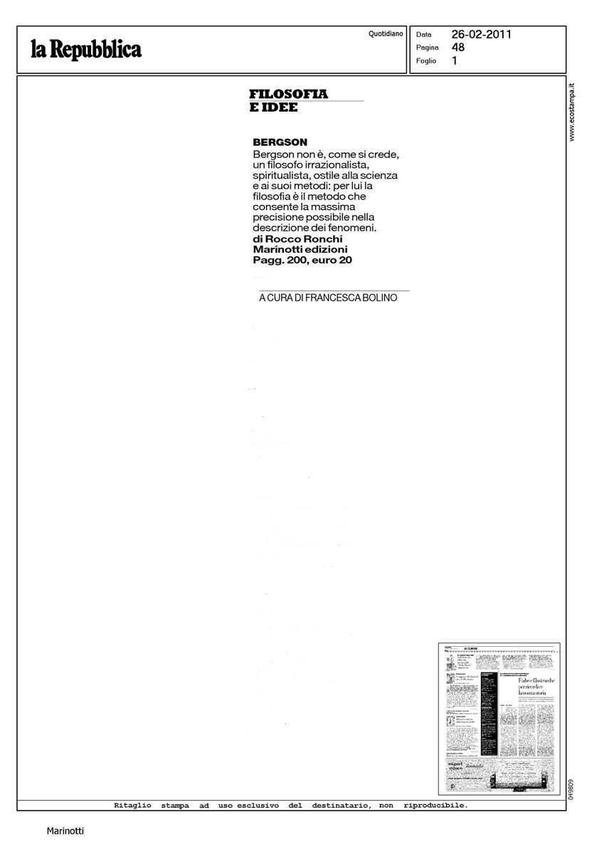 Henri Bergson (1859-1941) è stato tra i massimi filosofi del Novecento. In vita, la sua fama e la sua influenza furono enormi. Non c’è ambito del sapere, dalla fisica alla psicologia, dalla teologia alla biologia all’estetica, che non sia stato investito e radicalmente trasformato dal suo pensiero. In questo saggio Rocco Ronchi discute criticamente le tesi del filosofo francese e ne affronta in modo organico il pensiero, liberandolo, al contempo, dai pregiudizi e dagli equivoci che, soprattutto in Italia, hanno accompagnato la ricezione della sua opera. Bergson non è, come si crede, un filosofo irrazionalista, spiritualista, ostile alla scienza e ai suoi metodi. Per lui la filosofia è un metodo rigorosamente empirista, che consente la massima precisione possibile nella descrizione dei fenomeni. Bergson è il filosofo che ha cercato di emancipare la scienza da quanto di “metafisico” era ancora inconsapevolmente presente nelle sue pratiche. Con le sue celebri nozioni di “durata” e di “memoria”, ha infatti costruito un nuovo modello di intelligibilità del divenire, alternativo a quello aristotelico, in grado finalmente di spiegare, senza riduzionismi, il “vivente” quale era stato descritto dalla biologia evoluzionista. Il pensiero bergsoniano è presentato da Ronchi come uno snodo essenziale della filosofia del Novecento. Ne viene mostrata la dirompente attualità attraverso un confronto sistematico con la fenomenologia, l’esistenzialismo, l’ermeneutica, il pensiero della differenza di Gilles Deleuze e con l’epistemologia della complessità. Al tempo stesso, l’opera di Bergson è ricollocata dall’autore all’interno della tradizione filosofica occidentale, come un capitolo, tra i più alti, dell’indagine filosofica sulla natura, in continuità con l’opera di quei filosofi e di quei teologi che, dai neoplatonici a Cusano fino a Giovanni Gentile, hanno provato a pensare la natura come vita vivente e come divinità immanente.