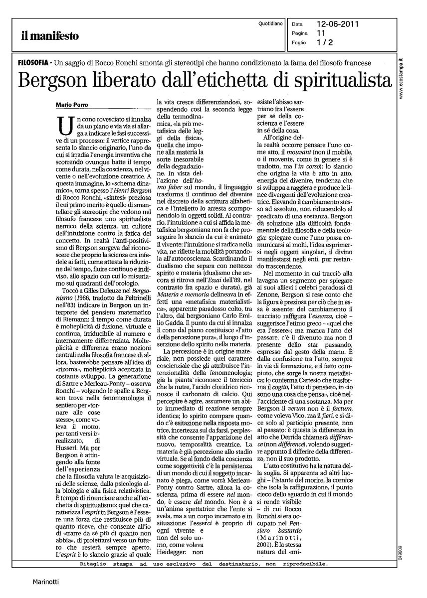 Rocco Ronchi (1957) insegna Filosofia teoretica presso l’Università degli Studi di L’Aquila e Filosofia della comunicazione presso l’Università Bocconi di Milano. Da sempre studioso di Bergson, si è lungamente occupato della questione della “comunicazione” intesa filosoficamente come “partecipazione” alla verità e fondamento della pratica filosofica. Tra le sue ultime opere: Teoria critica della comunicazione (Milano, 2003), Filosofia della comunicazione (Torino, 2008) e la cura del volume Filosofia teoretica (Torino, 2009). Per la Christian Marinotti Edizioni ha pubblicato, nel 2001, Il pensiero bastardo. Figurazione dell’invisibile e comunicazione indiretta.